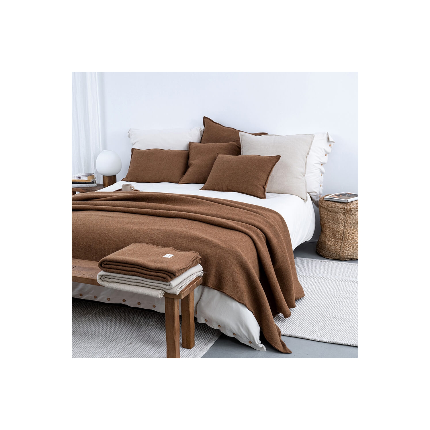 Einrichtungsempfehlung für die Tagesdecke Wool Haselnussbraun von MOYHA
