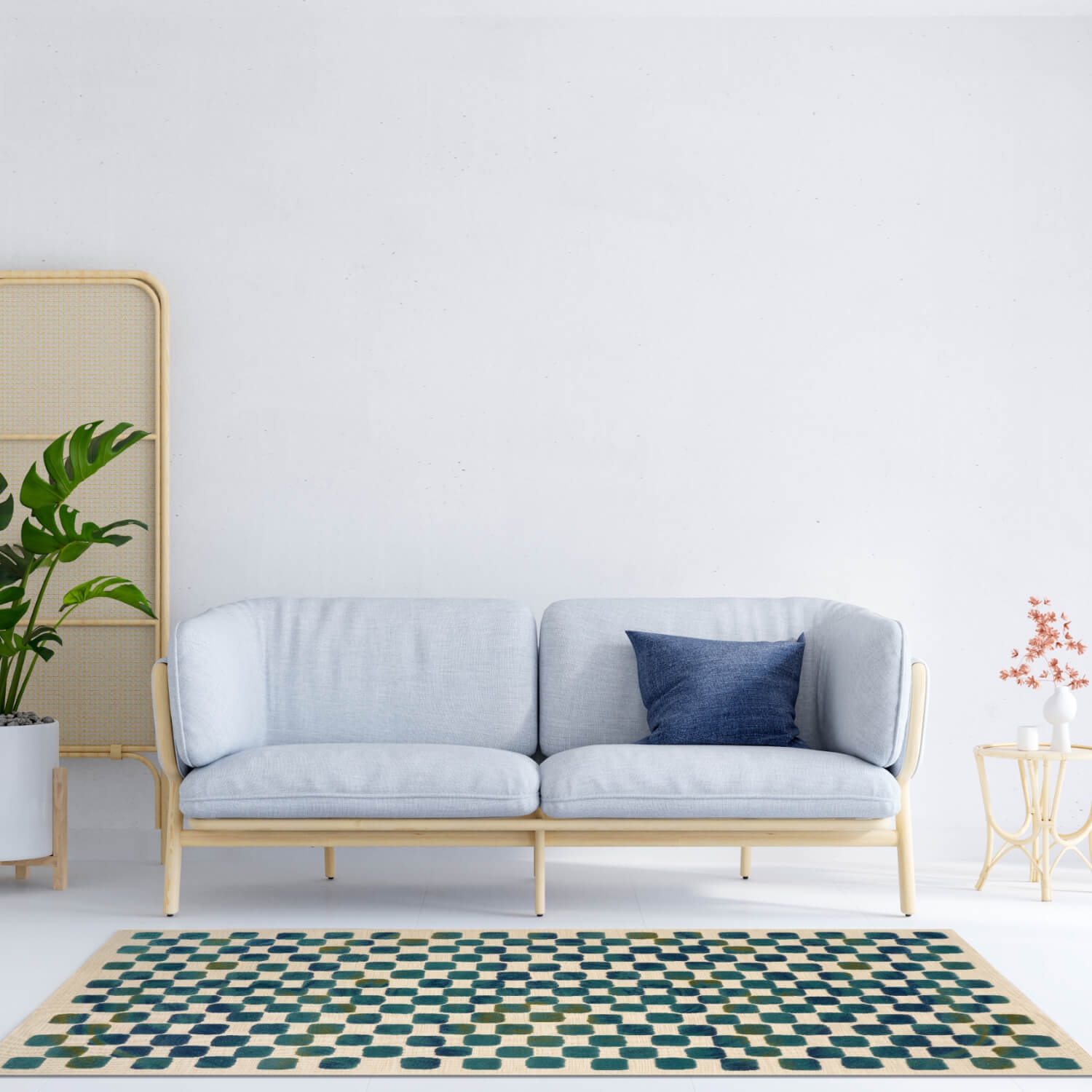Entdecken Sie den In- & Outdoor-Teppich Calma von Carpet Decor, der mit seinem kunstvollen Design und faszinierenden Farben Frische und Harmonie in jeden Raum bringt. Dieser Teppich ist nicht nur ein stilvolles Dekorationselement, sondern auch äußerst praktisch für den Außenbereich. Hergestellt aus 100% hochwertigem Polypropylen, ist er strapazierfähig, pflegeleicht und UV-beständig. Sein geometrisches Muster in Grün- und Blautönen erinnert an Aquarellpinselstriche und verleiht jedem Raum eine kreative Note. Perfekt geeignet für Balkone, Terrassen oder Innenräume, bietet dieser Teppich eine elegante Lösung, die dauerhaft schön bleibt – ideal für Designliebhaber, die Individualität schätzen.