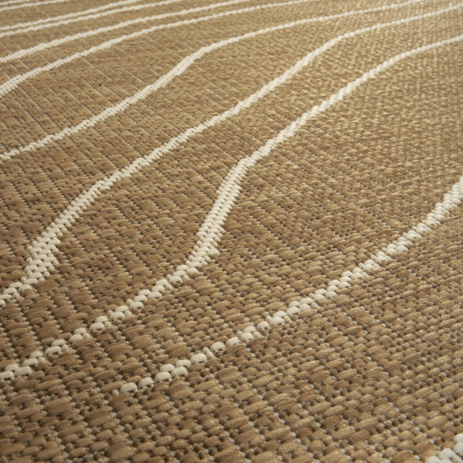 Der In- & Outdoor-Teppich Duna von Carpet Decor bringt natürliche Eleganz und funktionalen Mehrwert in dein Zuhause. Mit seinem zweifarbigen Design in Beige und fließenden, hellen Linien erinnert er an sanft gewellte Sanddünen – ideal für alle, die minimalistisches, naturnahes Wohnen schätzen.