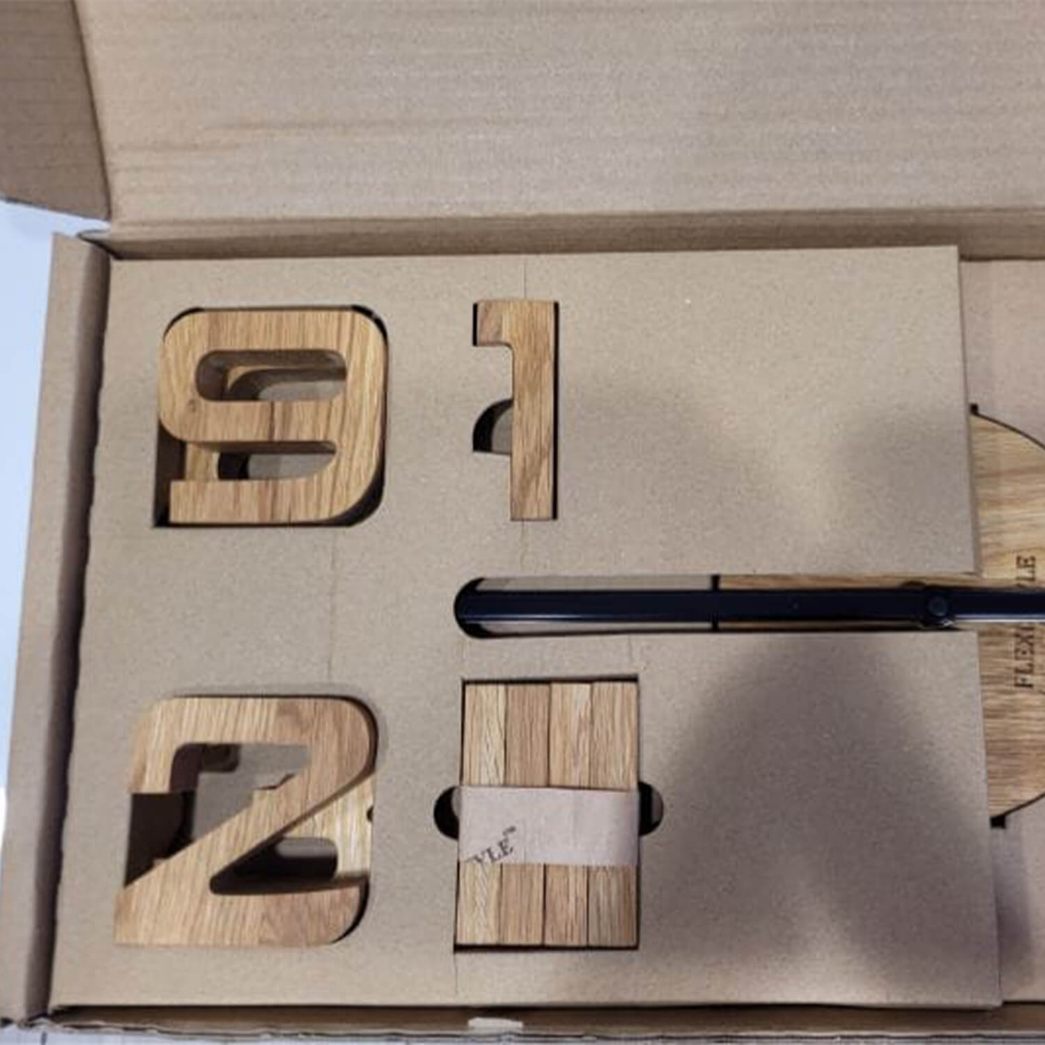 Die Wanduhr EKO besticht durch ihre hochwertigen Materialien und durchdachten Konstruktionsmerkmale. Das natürliche Eichenholz wurde mit umweltfreundlichem Öl behandelt, was nicht nur die Holzmaserung betont, sondern auch Ihre Gesundheit schützt. Schwarze Zeiger bilden einen eleganten Kontrast zum hellen Holz, während die individuelle Gestaltung mit selbstklebenden Ziffern und die beigelegte Montagehilfe eine einfache sowie präzise Anbringung ermöglichen. Der Mechanismus der Uhr ist nahezu geräuschlos, sodass Sie in Ruhe und Stil die Zeit ablesen können, ohne durch tickende Geräusche gestört zu werden.