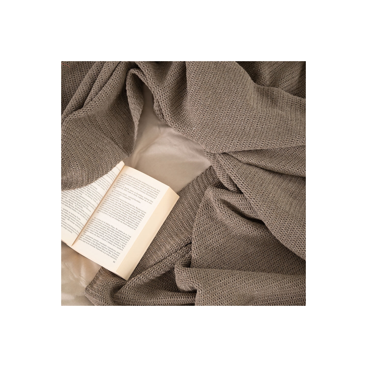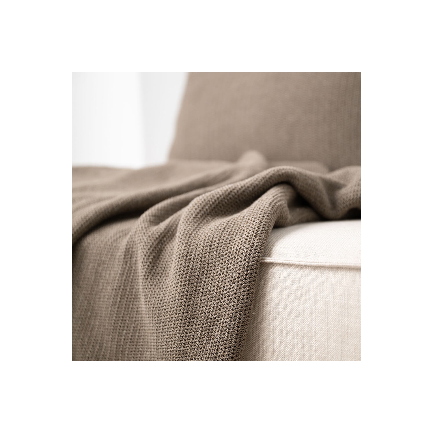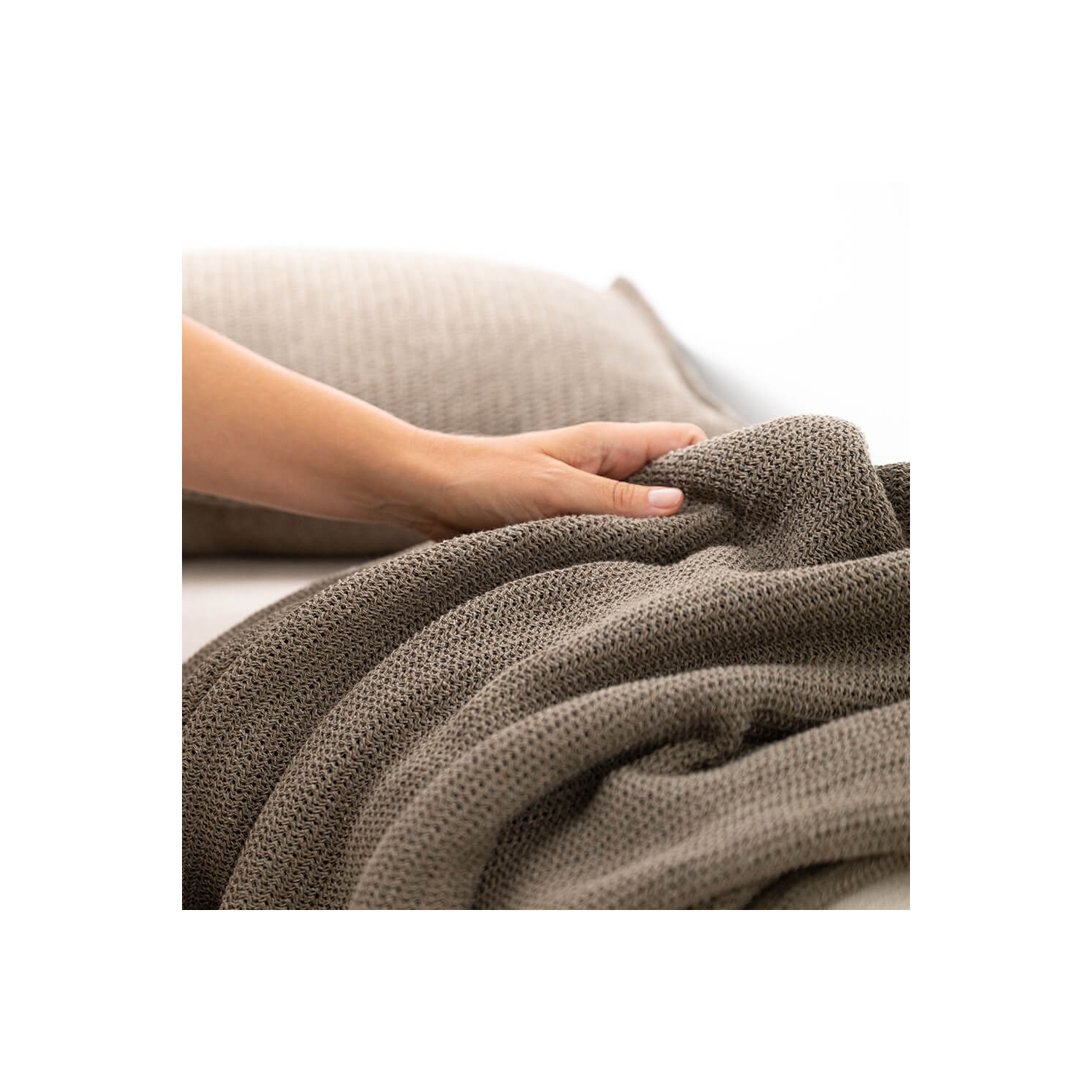 • Schenkt Wärme und Leichtigkeit beim Einkuscheln; Strickdecke aus recyceltem Baumwollgarn in Braun.