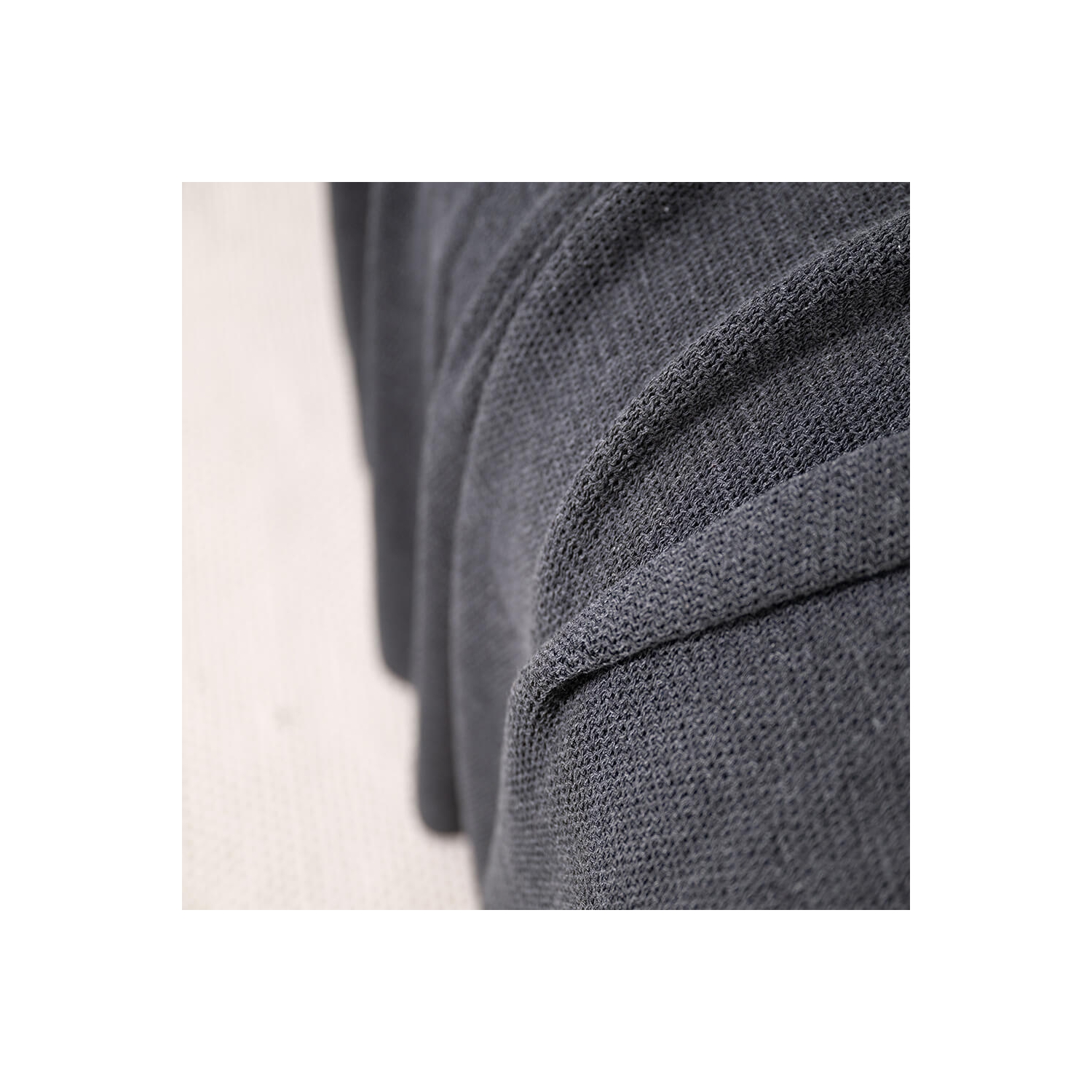 Setzt ruhige Akzente auf Sofa und Bett; Dekokissen in Graphit mit feiner Webstruktur aus recyceltem Baumwollgarn.