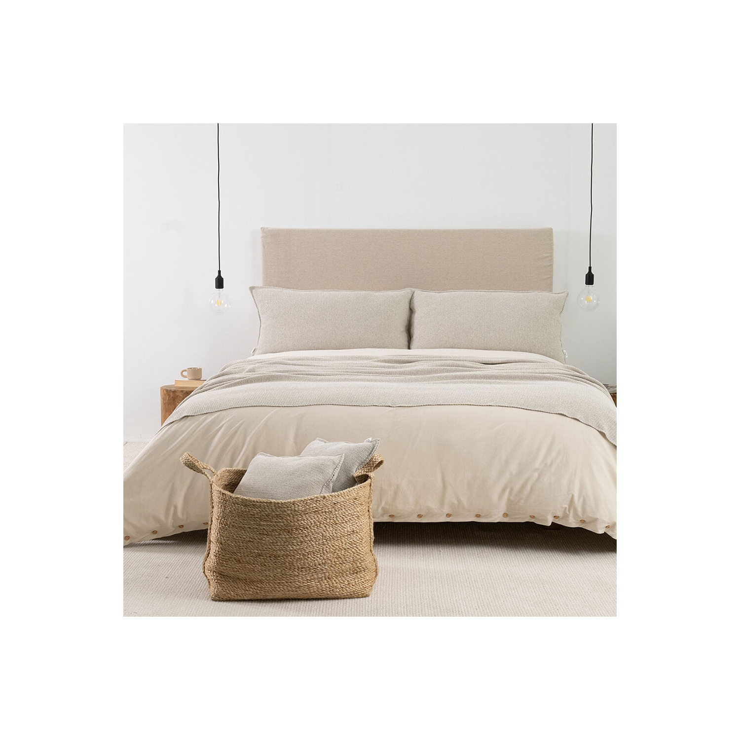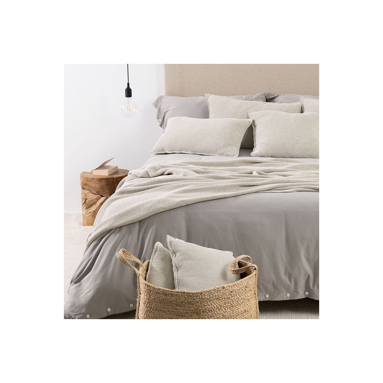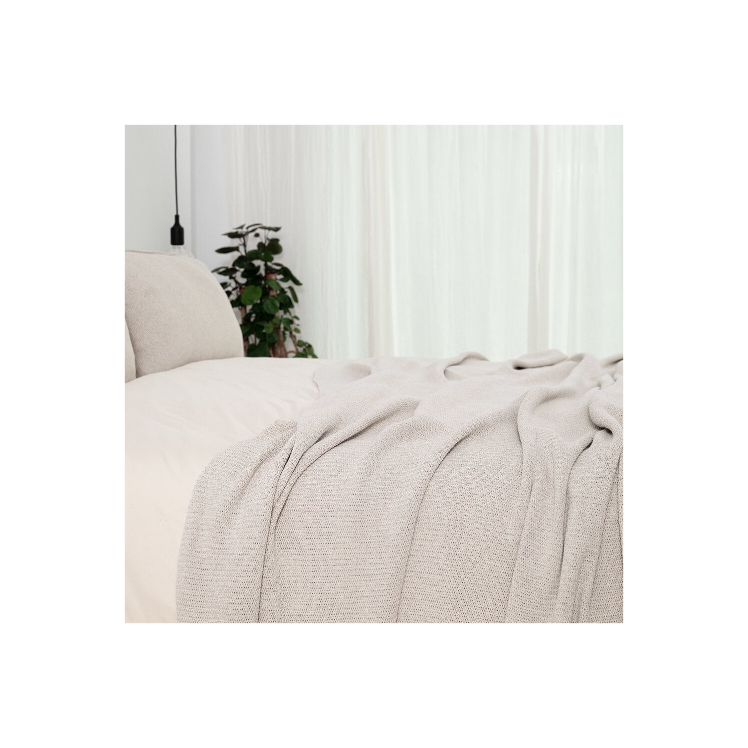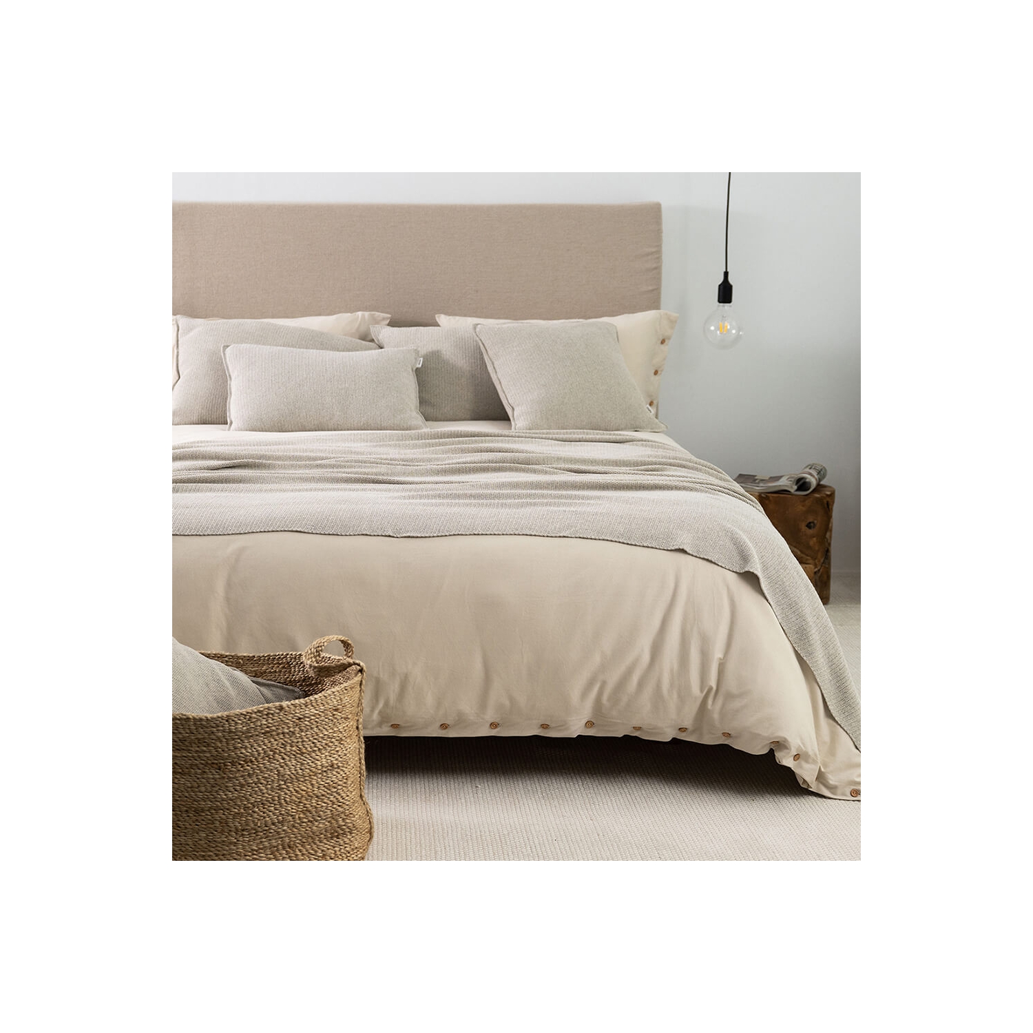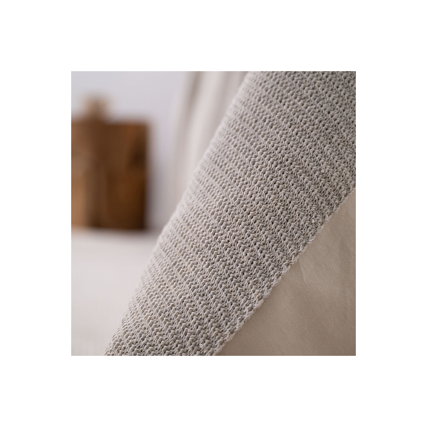 Setzt ruhige Akzente auf Sofa und Bett; Dekokissen in ecru Sand mit feiner Webstruktur aus recyceltem Baumwollgarn.