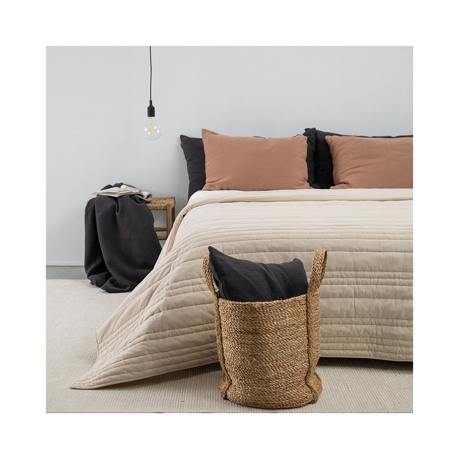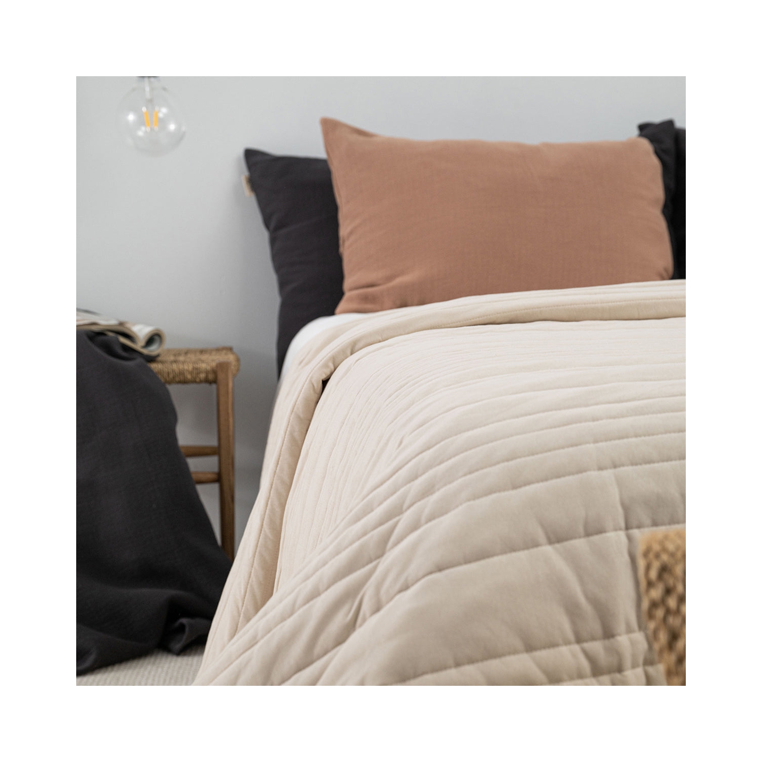 Dank ihrer neutralen Farbgebung in Beige Sand lässt sich die MOYHA gesteppte Tagesdecke perfekt in verschiedene Schlafzimmerdesigns integrieren. Kombinieren Sie diese gesteppte Tagesdecke beige aus Baumwolle mit einfarbiger Baumwollbettwäsche, um ein harmonisches Ambiente zu schaffen. Besonders gut passt die Tagesdecke zur My Favorite Bettwäsche-Kollektion. Darüber hinaus kann sie als zusätzliche Decke in kalten Nächten dienen, was sie nicht nur schön, sondern auch praktisch macht. Die pflegeleichte Handhabung – einfach in der Maschine bei 30 Grad waschen – rundet das luxuriöse Gesamtpaket ab und sorgt dafür, dass die Tagesdecke stets frisch bleibt.