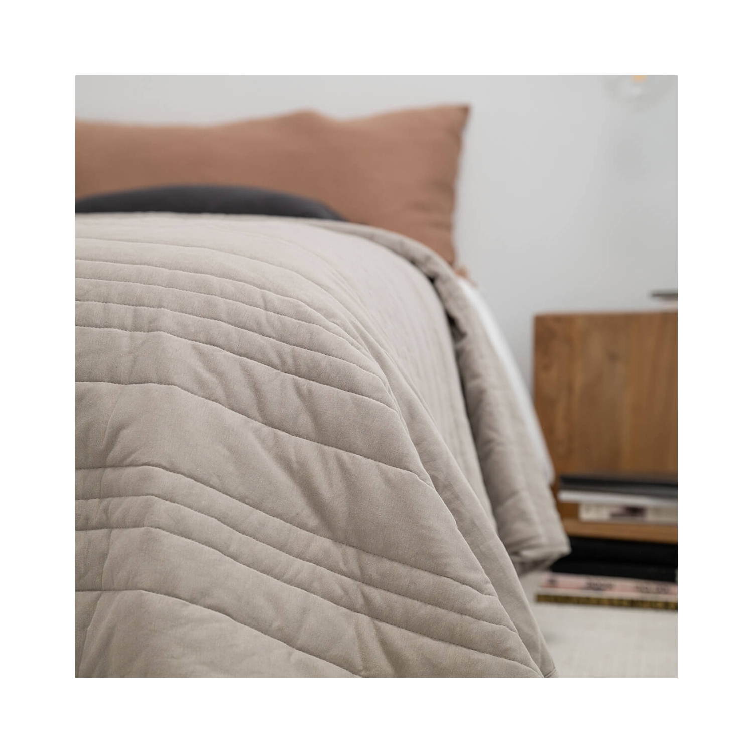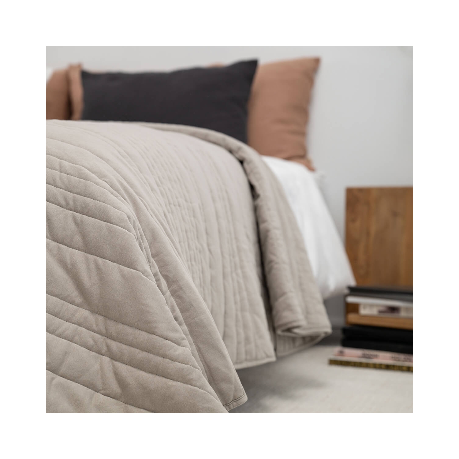 Hochwertige Materialien der Gesteppte Tagesdecke Beigegrau aus Baumwolle