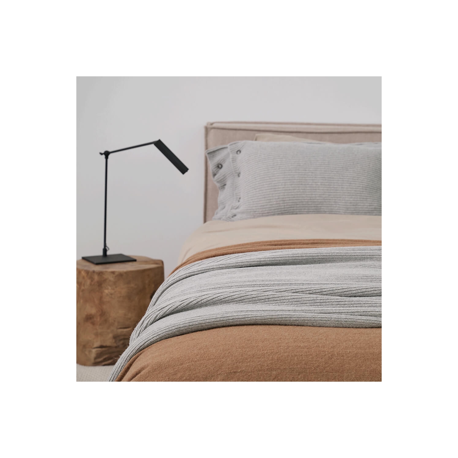 Die Farbnuancen in warmen Erdtönen und grauen Naturtönen werden mehrfarbig kombiniert. Die langweilige Eintönigkeit wird elegant aufgebrochen und wirkt weiterhin schlicht und minimalistisch. Das Rippenstrickmuster dominiert die gesamte Kollektion der zweifarbigen Tagesdecken und unifarbigen Wolldecken. Die passenden Zierkissen werden mit edlen Knöpfen aufgelockert.